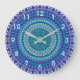 Turquoise and teal blue mandala large clock