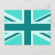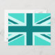 Colourful pattern of crosses based on the Union Jack in shades of aqua, turquoise and teal.