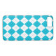 A pretty turquoise blue and white argyle pattern design on a phone case.