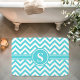 Turquoise And White Chevron Monogram Bath Mat