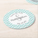 turquoise and white chevron monogram party round paper coaster