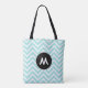Looking for a large-size flea market or garage sale bag? This sturdy tote in a subtle turquoise and white chevron zigzag pattern is available in medium: 16 x 16 and large: 18 x 18 inches. Also comes as a cross-body bag in two sizes. To replace the letter shown in the monogram circle, just replace the letter on the front (and back) with your own initial. You can also change the font style, size and colour when you click "Customise."