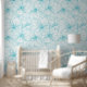Turquoise and White Flowers Pattern Wallpaper