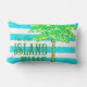 Turquoise and White Stripe Palm Tree Island Time Cushion