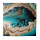 Turquoise Aqua Blue Gold Gemstone Acrylic Pour Art Tile