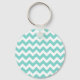 Turquoise Aqua White Chevron Zig Zag Pattern Key Ring