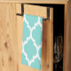 Turquoise Aqua Wht Moroccan Quatrefoil Pattern #4 Tea Towel
