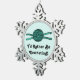 Turquoise Ball of Yarn & Crochet Hooks Snowflake Pewter Christmas Ornament