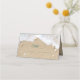 Turquoise waves, seashells, starfish and sand dollars on a beach sand background accent this folded place card, making it perfect for the beach themed Bat Mitzvah.