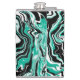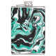 Turquoise, Black and White Marble Fluid Art Hip Flask