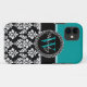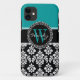 Turquoise, Black Damask Pattern Initial Name Case-Mate iPhone Case