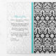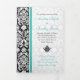 Turquoise Black Damask Tri-Fold Wedding Program Programme
