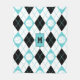 This colourful basketball team colours fleece blanket features a turquoise blue, black and white argyle plaid pattern with turquoise "stitching" extending diagonally across the diamond shapes and semitransparent basketballs that overlie and blend with the turquoise diamond shapes - customise with athlete's monogram - by katz_d_zynes