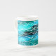 An eye-catching Bone China mug, with a turquoise blue, dark green, white and black abstract 'Waves' design, from a watercolour by Judy Adamson. Matching tea pot, pitcher and various mugs are also available.