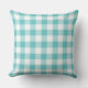 Turquoise Blue and White Gingham Plaid Pattern Cushion