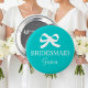 Personalised turquoise blue and white bridesmaid buttons with little bow tie and elegant font. Great for bachelorette party, bridal shower and beautiful weddings. Classy round design. Posh and cute! Make your own for maid of honour, matron of honour, flower girl, mother of the bride etc.
