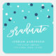 Stylish graduation return address sticker featuring featuring the word "Graduate" in a trendy white brush script against a turquoise background with white and blue confetti scattered on top. Use it when you send out your graduation announcements or graduation party invitations. Check out matching graduation items here https://www.zazzle.com/collections/119637323833384053?rf=238364477188679314