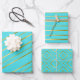 Turquoise Blue Elegant Gold-Striped Wrapping Paper Sheet
