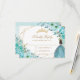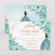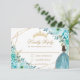 Turquoise Blue Floral Quinceañera Gold Princess RSVP Card