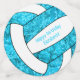 This cute girls' volleyball birthday party confetti features girly turquoise blue and white volleyballs with customisable "Happy Birthday" greeting and girl's name - by katz_d_zynes