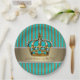 Turquoise Blue Gold Prince Baby Shower Paper Plate