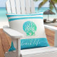 Turquoise blue green beach life script seashell cushion