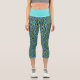 Turquoise Blue Green Black Diamond Pattern Sports Capri Leggings