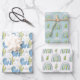 TURQUOISE BLUE GREEN DINOSAURS & RAINBOWS WRAPPING PAPER SHEET