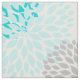 Turquoise Blue Grey Dahlias MOD floral print Fabric