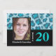 Turquoise blue leopard print 20th birthday photo invitation, featuring a turquoise blue teal leopard panther animal print pattern on top, solid black colour to the bottom, your photo and a turquoise blue stripe. A modern, fashionable, stylish design of a classic theme with a light touch of vintage/retro. Trendy, contemporary and classy feminine design, perfect for a milestone 20, 30, 40, 50, 60, 70, 80, 90 and why not 100th birthday. Change the number to fit your needs.