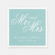 Turquoise blue Mr and Mrs paper wedding napkins. Elegant script typography design for classy wedding party. Stylish handwritten calligraphy text. Customisable colours for bride and groom theme.