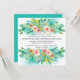 Two lush borders of blue and green botanical greenery with pink flowers. Bright yellow leaves also add a spark of colour. Square wedding invitations are one of the hottest trends in wedding stationery design. The back is a deep turquoise blue. This invitation is part of the Tropical Botanical collection. It contains the DIY wedding templates you need to create a contemporary and chic wedding stationery suite. You should see a link to it on this page. If you don't see the link or need help with an item, please contact me.