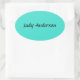 Turquoise Blue Professional Modern Elegant Name Oval Sticker
