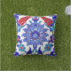 Turquoise Blue Red Ancient Turkish Floral Tile Outdoor Cushion
