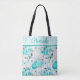 Turquoise Blue Roses, Grey Stripes and Monogram Tote Bag