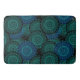 Turquoise blue round mandala on black background bath mat