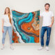 Turquoise blue, rust and gold paint abstract fleece blanket