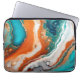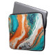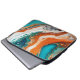 Turquoise blue, rust and gold paint abstract laptop sleeve