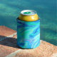 Turquoise Blue Tropical Abstract Can Cooler