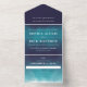 Turquoise Blue Waves Ombre Wedding All In One Invitation
