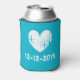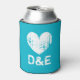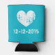 Turquoise blue and white wedding can cooler with cute heart. Vintage design monogrammed with name initial letters of bride and groom. Weathered love symbol with date of marriage on back side. Make your own wedding favour / souvenir for guests at your party. Romantic theme beverage holder design. Perfect for alcoholic drinks like beer. Also available for bottles. Change the quantity to get the cheapest price per cooler.