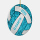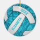 This turquoise and white volleyball ornament features a floral kaleidoscopic pattern blended with the turquoise blue volleyball panels and a subtle artsy abstract swirl pattern blended with the white panels - her name and Christmas year are customisable - by katz_d_zynes | part of katzdzynes' Sports-themed Christmas ornaments collection >>> https://www.zazzle.com/collections/119728248363801463 and