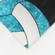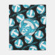 This cute and sporty volleyball fleece blanket features a large turquoise blue and white artsy, stylised volleyball, upon which her name and jersey number can be personalised, overlying a pattern of smaller turquoise and white volleyballs and the sporty font text "I love volleyball" that stretches between the angled rows of volleyballs - background is customisable black - by katz_d_zynes