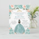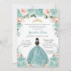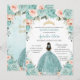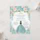 Turquoise Blush Floral Princess Gold Quinceañera Invitation