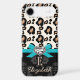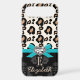 A cute and girly leopard spot pattern in gold, black and cream hues. A printed bright turquoise aqua blue ribbon look design with a faux heart shaped "diamond" encrusted by solitaire bling on the bow makes this extra girly and stylish. It can be customised with your monogram and initial and personalised with your name in gold on the black background with a subtle damask pattern. Please, note that this design is printed flat and will look as shown in the preview image. No three dimensional embellishments have been added to this design. Artwork © Chrissy H. Studios, LLC. All rights reserved.