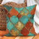 Turquoise Burnt Orange Moroccan Quatrefoil Cushion