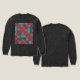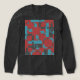 Featured is an abstract, diagonal pattern, composed of shapes and lines in turquoise blue and charcoal grey on a dark red background, creating somewhat of a mosaic-like motif in the spirit of MCM design. Pictured here on a "charcoal black" (long-sleeved Tri-Blend) t-shirt , with other colours and styles available, the design projects a vivid, festive, and lively artistic quality for a versatile and trendy addition to your casual and everyday wear (whether at home, socialising with friends, playing sports, or running about town). The shirt design as "wearable art" also expresses a sense of your individualised style, contributing to a feeling of being "together" and creative in your personal wardrobe choices.