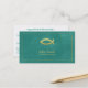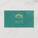 Turquoise Christian Counsellor Ichthus Appointment business card template with an image of a grunge golden Ichthus (golden effect only not real gold colour) with canvas texture. An appointment card on the back of this Doctor business card template, which helps you distributed your business cards. You can change text and background colours to make them perfect for your taste. A great design for Christian counsellor, family or marriage counseling, pastor or other Christian church related services. A standard business card size. Business card inspiration for any kind of business. Business card dimensions are 3.5" x 2". This business card is designed by superdazzle.com