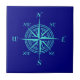 Turquoise Compass Rose On Navy Blue Coastal Decor Tile