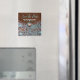 It was a bit smaller than expected, but I was too excited to check dimensions. The product itself send well printed though the grey text is a bit paint. Magnet worked perfectly on my fridge.